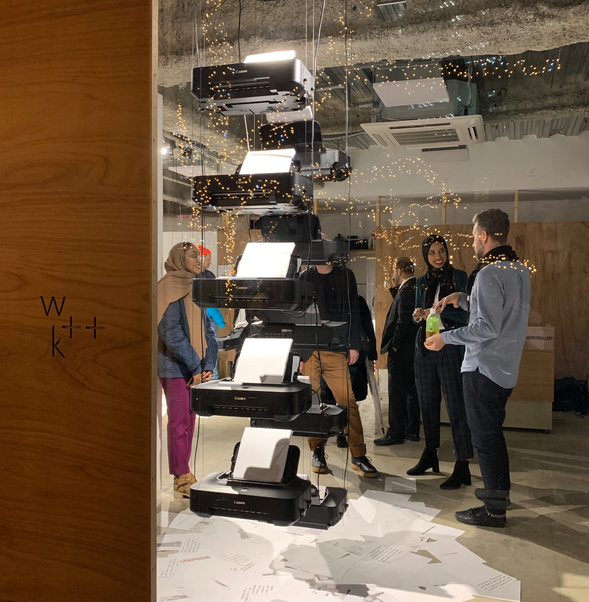 Hammett, Levi., Giovanni Innella, Simone Muscolino, Michael Hersrud, Maryam Al Homaid, Nathan Davis, Hind Al Saad, Sarah Elawad, & Reham Ahmed. -162°C, Doha. (Installation of 40 printers outputting procedurally generated visual content). The Fire Station, Gallery 3. 14 - 25 March, 2019.