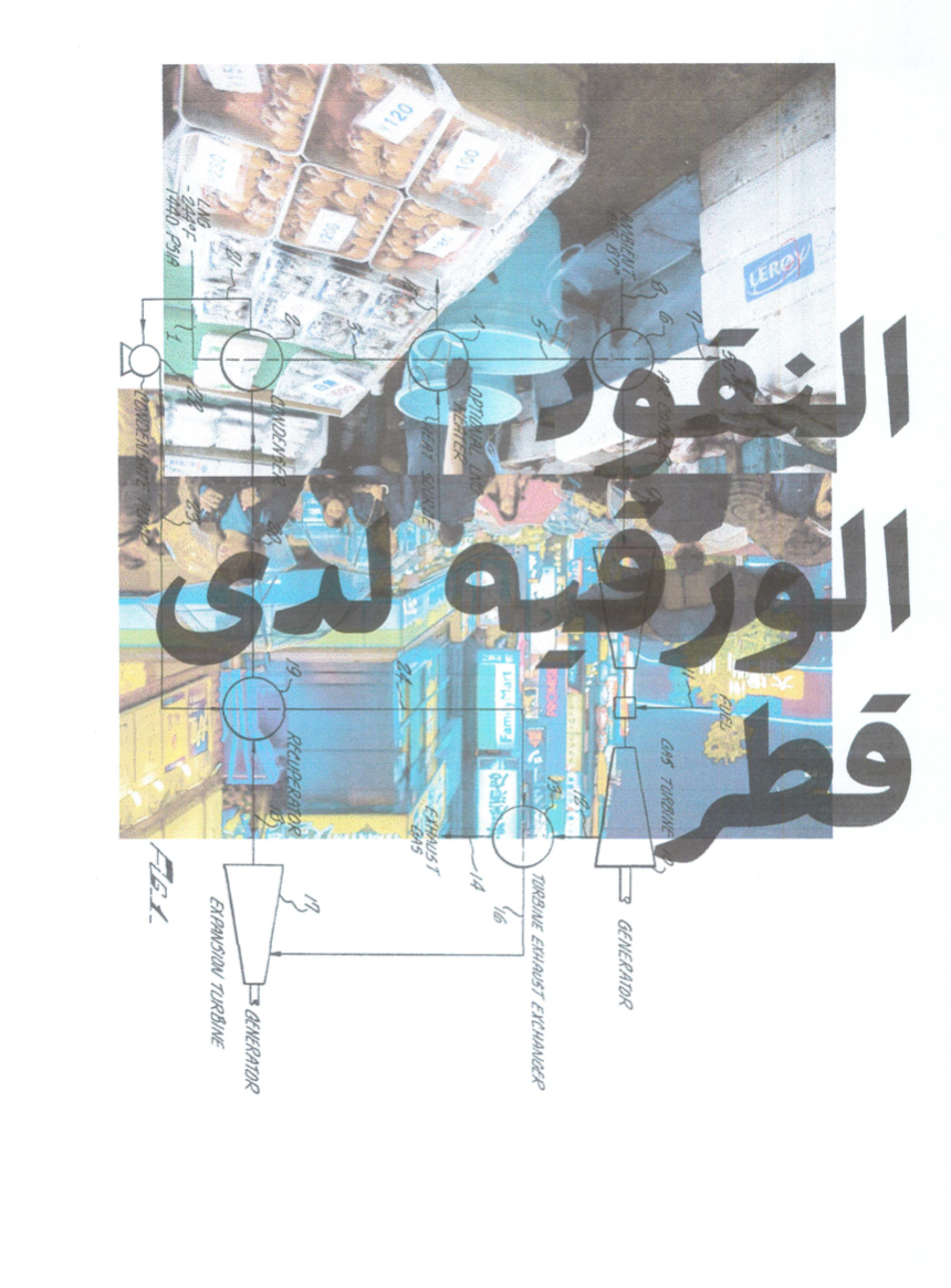 After each cycle, the printed pages were reloaded into the printers and overprinted. Each A4 sheet was printed 6 times, three overprint layers on the front and three on the back. In theory, each print should be a mash-up of text and images from Qatar, Japan and LNG to create an abstract narrative with a satirical twist on cultural difference and similarities.